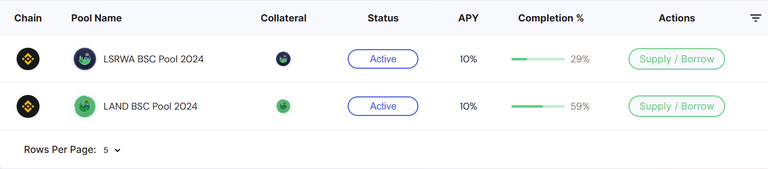 The Landshare Loan Protocol has two distinct pools: one for LSRWA tokens and another for LAND tokens. Each of these pools has a set maturity date, the deadline by which loans must be repaid. If the loan isn’t repaid by this date, the collateral used by the borrower will be liquidated, meaning it will be sold to recover the loan amount.