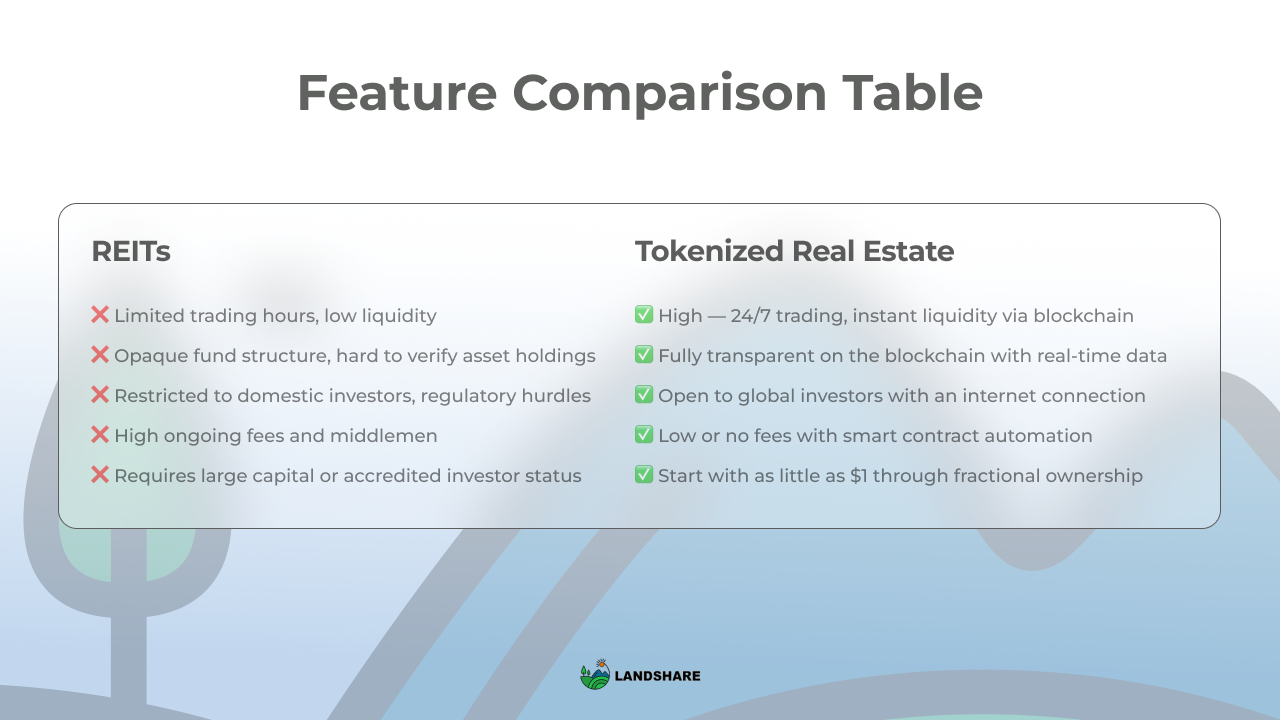 The shift from traditional REITs to tokenized real estate marks a pivotal moment in property investment. Platforms like Landshare are making it possible to invest in U.S. real estate smarter, faster, and globally.